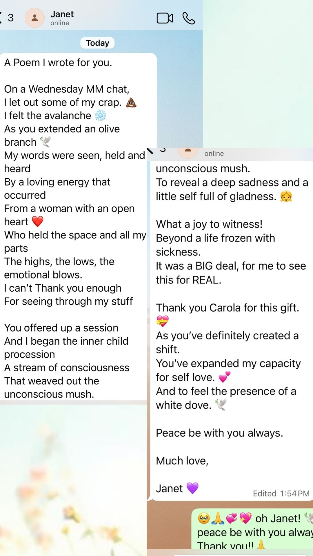 "I have felt so much better today, grounded, calm, settled, peaceful. I am trusting into myself and my body big time and delivering honest yes's and no's and it feels SO great!" Louis